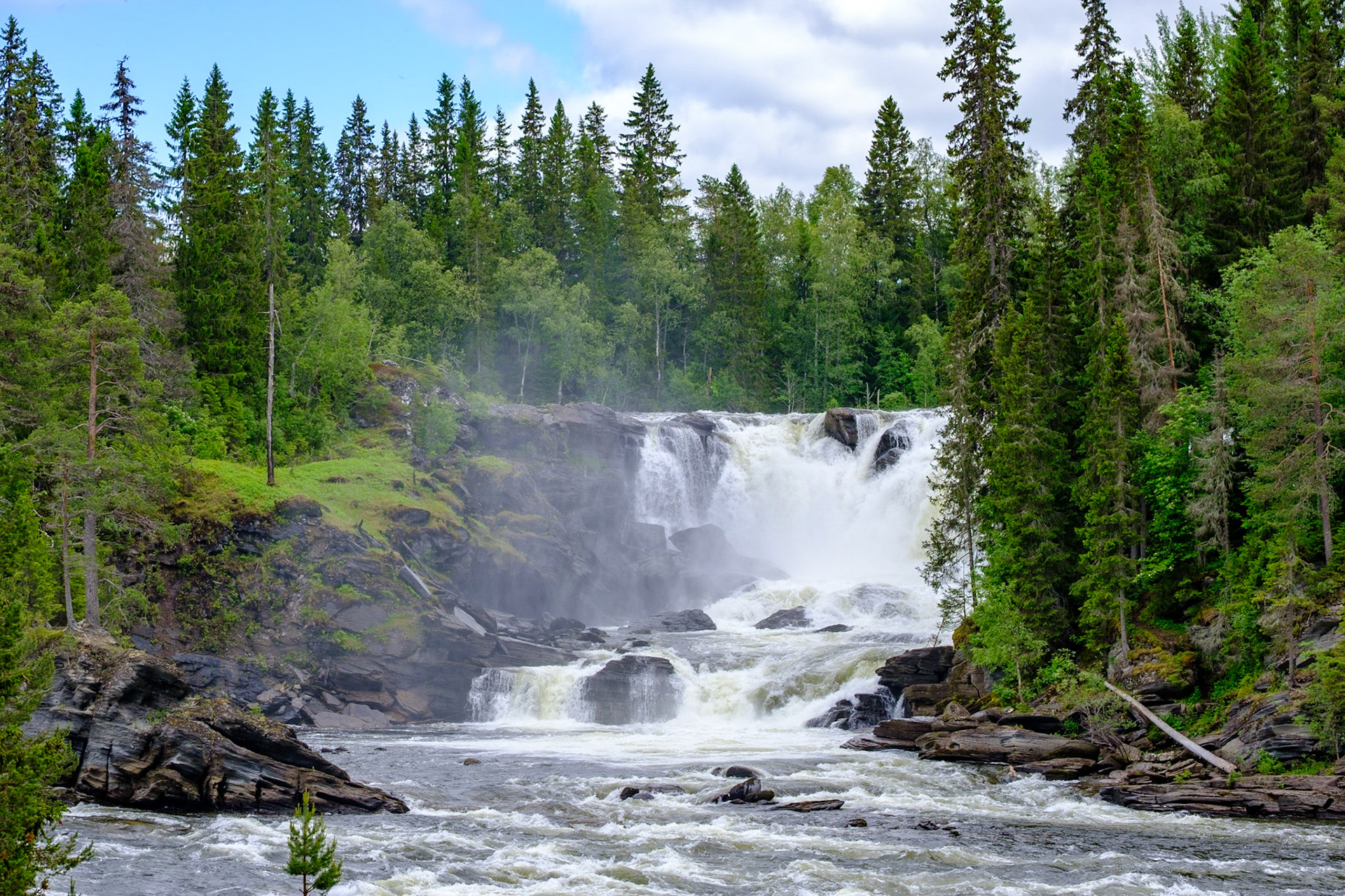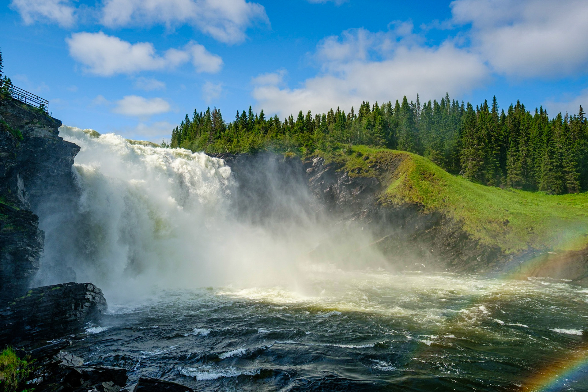 SSweden’s biggest waterfall, just west of Åre. One side is easy to reach by ramp or trail, but the best view is from below where you can frame the full drop — and sometimes a rainbow in the spray. Be careful, the rocks get very slippery.